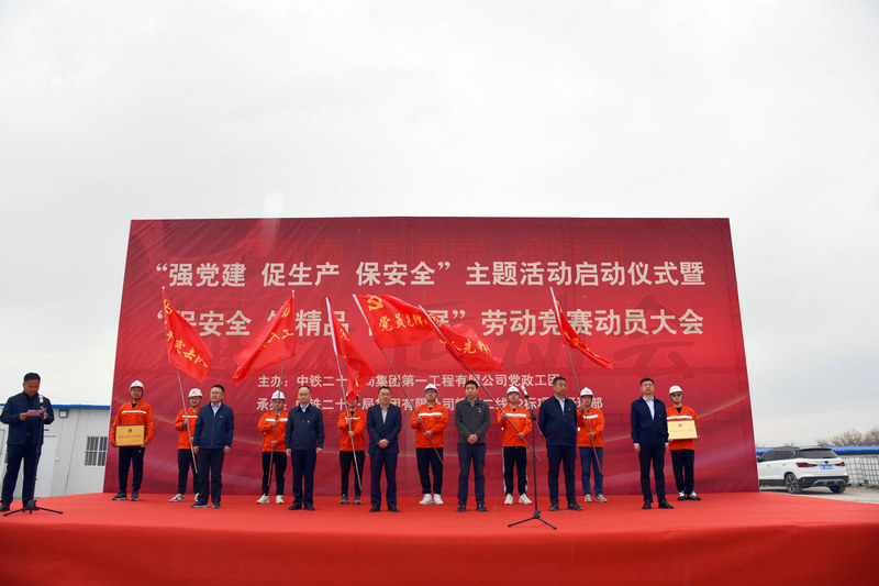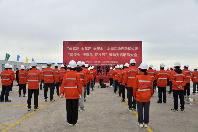 為促進黨建工作與施工生產(chǎn)深度融合,進一步發(fā)揮黨群組織優(yōu)勢,4月25日,中鐵二十一局一公司在精阿鐵路二線項目舉行了“強黨建、促生產(chǎn)、保安全”主題活動啟動儀式暨“保安全 鑄精品 促發(fā)展”勞動競賽動員大會,精河縣交通運輸局、烏魯木齊鐵路建設指揮部領導應邀出席活動,該公司領導、相關部門人員及項目部職工共計100余人參加。
