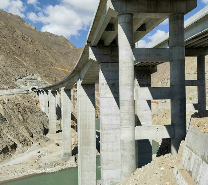 目前卡如雅魯藏布江大橋正在拆除架橋機,全力推進橫隔板、濕接縫、護欄等后續(xù)施工。