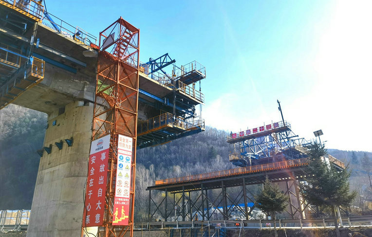 當(dāng)天下午,筆者一行翻山越嶺驅(qū)車100多公里來到了沈白高鐵吉林省撫松縣施工地段??缭綔啺阻F路、X096公路、湯河,穿過雙河電站蓄水庫區(qū)的湯河1、2、3號大橋施工現(xiàn)場映入眼簾。筆者看到,經(jīng)過20多天的營業(yè)線封鎖施工,跨越渾白鐵路的三座大橋正在進(jìn)行緊張的移動模架、掛籃 等施工作業(yè)。其中,湯河1號和2號大橋跨渾白鐵路營業(yè)線鋼構(gòu)防護(hù)棚建設(shè)已經(jīng)進(jìn)入了收尾階段。他們克服地處既有鐵路高邊坡、緊鄰湯河、安全風(fēng)險高等不利因素,制定了詳細(xì)的施工組織方案和應(yīng)急預(yù)案。調(diào)集了精兵強(qiáng)將30余人,并進(jìn)行了營業(yè)線施工安全知識的培訓(xùn)和關(guān)鍵工序的模擬演練,責(zé)任落實(shí)到崗到人,全力以赴搶進(jìn)度。“施工過程中,我們嚴(yán)格執(zhí)行標(biāo)準(zhǔn)化作業(yè)不走樣,對鄰近線路作業(yè)的砼泵車、汽車吊等機(jī)械一機(jī)一人防護(hù),施工現(xiàn)場進(jìn)行了“硬隔離”,筑起了安全屏障。目前兩座跨線鋼構(gòu)防護(hù)棚基本完成,為五月上旬橋梁跨線部分的掛籃懸臂澆筑段施工贏得了寶貴時間”蓬頭垢面一臉疲憊的項(xiàng)目副經(jīng)理兼分部經(jīng)理郭曉斌欣慰地說。