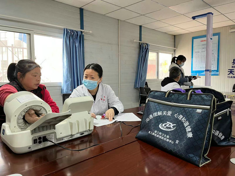 烏魯木齊訊(通訊員周玉明、劉建林)為有效保障工人身體健康,提高身體素質(zhì),近日,兵團(tuán)建工市政交通集團(tuán)天山建筑工程公司工會(huì)積極協(xié)調(diào)兵團(tuán)十一師醫(yī)院,組織醫(yī)護(hù)人員深入烏魯木齊凱盈廣場(chǎng)項(xiàng)目部,為全體干部職工和勞務(wù)工人進(jìn)行了職業(yè)健康體檢,為大家送上一份關(guān)心,一份健康。