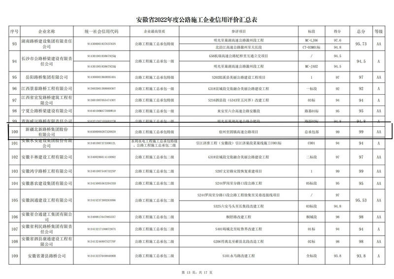 從安徽省交通運輸廳網(wǎng)站獲悉,北新路橋集團憑借良好的企業(yè)形象獲評2022年度安徽省公路施工和設計企業(yè)信用評價 A A級,這是該集團自進入安徽市場以來首次獲此殊榮。