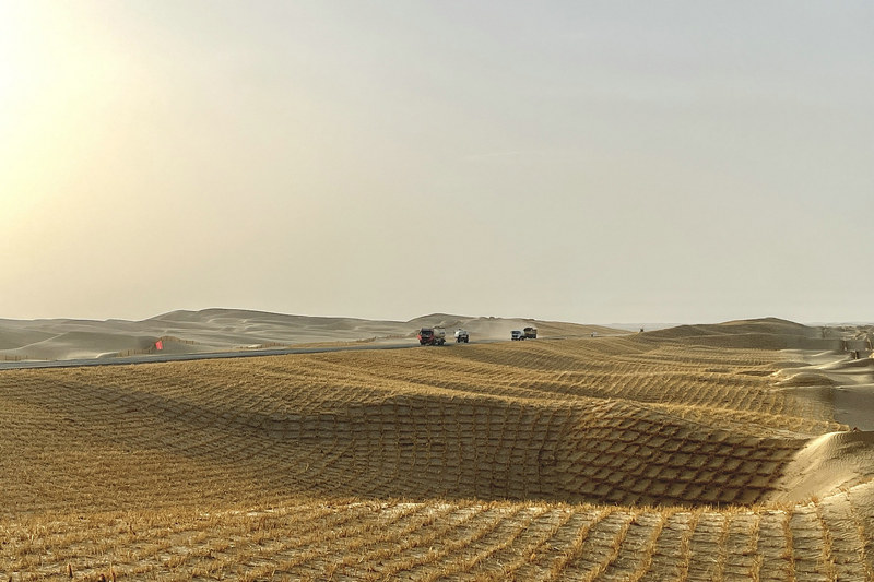 38團(tuán)訊(通訊員 崔振杰)5月15日,北新路橋集團(tuán)國(guó)際工程事業(yè)部第二師38團(tuán)至塔中沙漠公路項(xiàng)目上自卸車(chē)來(lái)回奔忙。該項(xiàng)目目前在沙漠中設(shè)有兩處營(yíng)地點(diǎn),無(wú)信號(hào)、無(wú)水電,一切補(bǔ)給靠外部營(yíng)地點(diǎn)運(yùn)輸,但就是在這樣越來(lái)越惡劣的變化中項(xiàng)目一點(diǎn)一滴推進(jìn)成型。如蒼龍潛地,飛沙走石中、艷陽(yáng)高照時(shí)、萬(wàn)里晴空下,自卸車(chē)往來(lái)奔忙、施工員駐足指揮、草方格徐徐鋪展,靜止與運(yùn)動(dòng)的平衡中“沙漠黃龍”直搗天際。