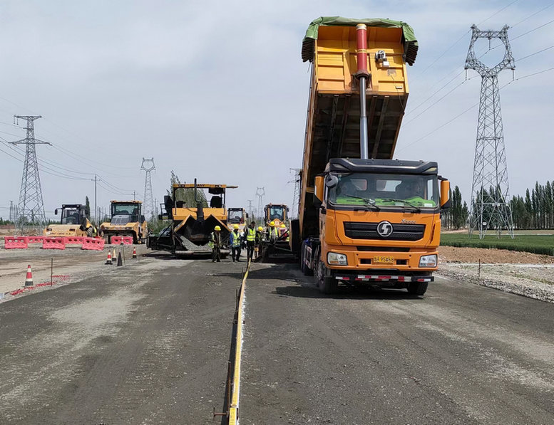 2023年5月20日,北新順通路橋G312線項(xiàng)目部施工現(xiàn)場(chǎng),在震耳的鞭炮聲中,水穩(wěn)運(yùn)輸車(chē)輛貨箱緩緩升起,水穩(wěn)料傾瀉進(jìn)攤鋪機(jī)儲(chǔ)料倉(cāng),水穩(wěn)攤鋪機(jī)有條不紊地前進(jìn),壓路機(jī)來(lái)回碾壓基層路面,工人正忙著鋪筑水穩(wěn)層,由北新順通路橋施工的G312線主線K3+800-K4+000水穩(wěn)基層試驗(yàn)段攤鋪正式開(kāi)始。