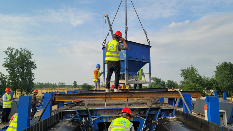 據(jù)悉,該項(xiàng)目預(yù)制箱梁共計(jì)339片,其中20m箱梁39片、30m箱梁236片、33.2m箱梁16片、35m箱梁32片、40m箱梁16片,計(jì)劃于2023年12月底完成所有箱梁預(yù)制工作。該項(xiàng)目部為保障首片試驗(yàn)梁順利澆筑,項(xiàng)目領(lǐng)導(dǎo)精心組織,合理部署,科學(xué)制訂施組方案,對(duì)箱梁預(yù)制場(chǎng)全體施工人員進(jìn)行了安全質(zhì)量、技術(shù)規(guī)范、作業(yè)技能、施工流程等全方位培訓(xùn),在物料保障、技術(shù)保障、措施保證、技術(shù)交底等多方面嚴(yán)格把關(guān)。歷經(jīng)30多天的梁場(chǎng)建設(shè)和緊鑼密鼓的籌備,最終克服材料運(yùn)輸困難,汛期雨季等問(wèn)題,在項(xiàng)目部及施工隊(duì)伍精心組織下,首片試驗(yàn)梁的成功預(yù)制,為該標(biāo)段預(yù)制箱梁施工的全面展開(kāi)奠定了基礎(chǔ)。