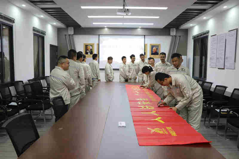 會議最后,舉行了“安全月”簽字儀式,項目全體員工紛紛在條幅上鄭重簽下了自己的名字,以己之名承諾安全重任。