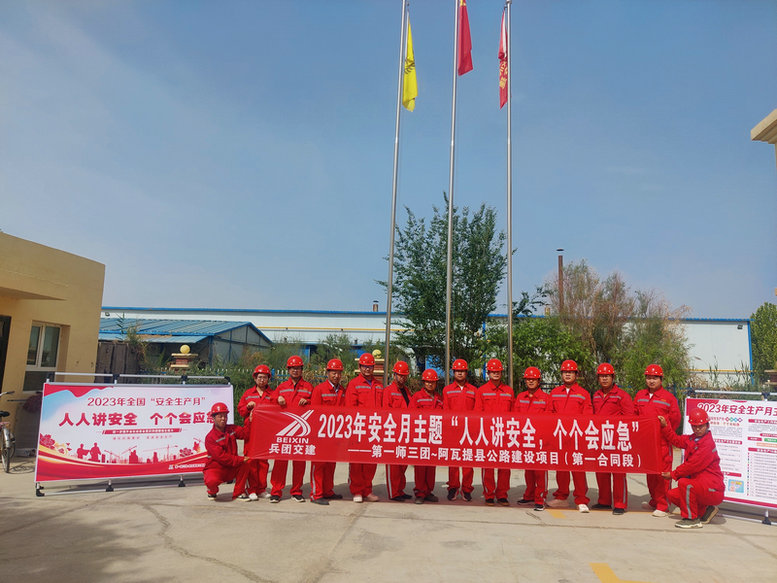 阿拉爾訊(通訊員 吳玉梅)為牢固樹(shù)立“人民至上、生命至上、安全第一”的理念,落實(shí)好“人人講安全、個(gè)個(gè)會(huì)應(yīng)急”安全生產(chǎn)月主題,推動(dòng)安全責(zé)任落實(shí),5月31日,兵團(tuán)交建公司第一師三團(tuán)-阿瓦提縣公路項(xiàng)目一標(biāo)段在項(xiàng)目駐地舉行“安全生產(chǎn)月”活動(dòng)啟動(dòng)儀式,吹響“安全生產(chǎn)月”號(hào)角。