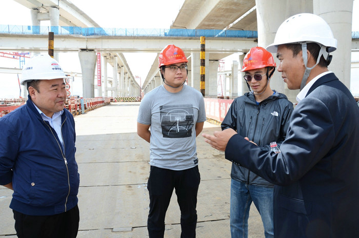 施工打開(kāi)局面贏得了先機(jī),更重要的是因?yàn)榫珳?zhǔn)定位,降低了安全風(fēng)險(xiǎn)。為加強(qiáng)現(xiàn)場(chǎng)管理,項(xiàng)目班子副職和相關(guān)部門(mén)負(fù)責(zé)人與主管領(lǐng)導(dǎo)簽訂安全質(zhì)量、進(jìn)度環(huán)保責(zé)任書(shū),壓實(shí)責(zé)任,兌現(xiàn)獎(jiǎng)罰,激發(fā)了主要管理人員的責(zé)任心和立足崗位建功創(chuàng)業(yè)的積極性。開(kāi)工幾個(gè)月,項(xiàng)目處在“初學(xué)走路”的摸索階段,樁基、棧橋施工進(jìn)度緩慢,黃偉果斷做出決定:請(qǐng)專家來(lái)!杭州、重慶等地研究院的橋梁專家來(lái)了,他們聽(tīng)了匯報(bào)、看了現(xiàn)場(chǎng),“對(duì)癥下藥”,問(wèn)題迎刃而解。同時(shí),對(duì)管理、施工人員分批進(jìn)行技術(shù)培訓(xùn),采取專家、經(jīng)理、總工授課、問(wèn)答、試卷測(cè)試等形式提升員工的技能。由于掌握了海上建橋技能,杭甬項(xiàng)目棧橋架設(shè)和樁基、橋墩施工走向良性發(fā)展軌道,7月份完成產(chǎn)值5000萬(wàn)元,8月份完成8000萬(wàn)元,9月份突破1億元,2020年完成產(chǎn)值高達(dá)70629萬(wàn)元,超額完成業(yè)主和公司下達(dá)的年度計(jì)劃。再看完成實(shí)物量:濱海高架與濱?;ネ茉O(shè)棧橋8000米、作業(yè)平臺(tái)108座;架通6.9公里主線棧橋并成功下穿金塘大橋;安全跨越17條海底管線;濱海高架樁基完成大半,挺拔高大的80座橋墩巍然屹立海上;135米大跨徑連續(xù)梁施工正酣。二公司被寧波市高等級(jí)公路建設(shè)管理中心評(píng)為三季度信用動(dòng)態(tài)考核優(yōu)秀單位;11月份在業(yè)主舉辦的鋼筋工技術(shù)比武大賽中勇奪桂冠。