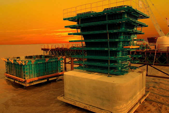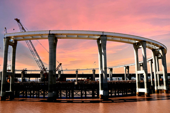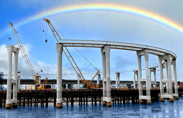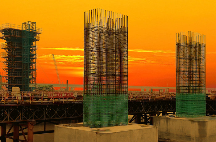建設(shè)中的濱?;ネㄖ骶€橋 呂奎元攝