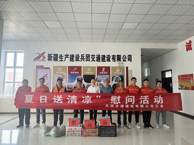 北屯訊(通訊員 臧明超)6月14日,兵團交建公司黨委副書記、紀委書記、工會主席李軍赴第十師S318-187團-183團青河農(nóng)場項目,開展“夏日送清涼 關(guān)懷到一線”慰問活動,代表公司黨委以及工會送去親切的問候,為奮戰(zhàn)在一線的職工送清涼,鼓干勁。