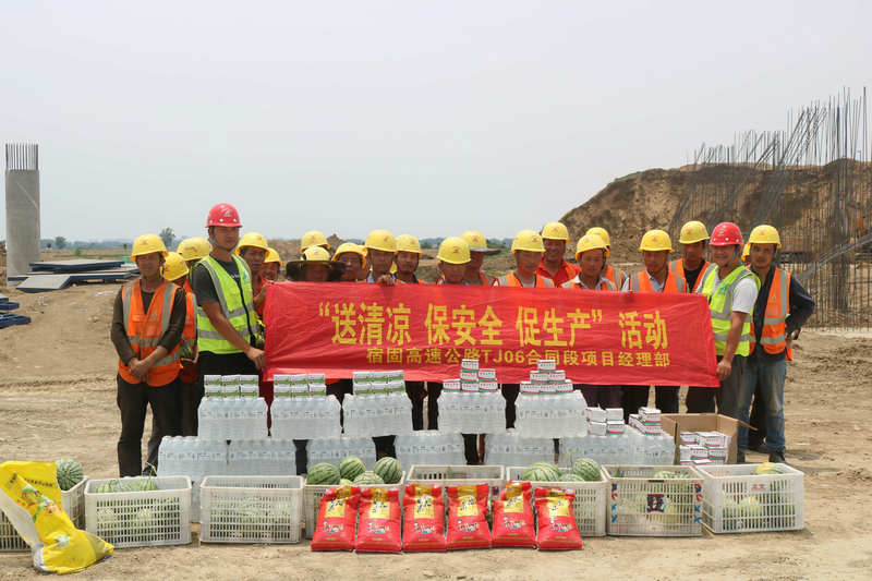 蚌埠訊(通訊員:孫鵬、李天懿)驕陽似火,酷暑難擋,安徽蚌埠地區(qū)持續(xù)高溫天氣給一線建設者帶來嚴峻的“烤”驗。為保障奮戰(zhàn)在一線建筑工人的健康安全,確保施工進度順利推進,近日,北新路橋集團長沙分公司安徽宿固6標項目根據(jù)分公司工會安排部署,組織開展了“送清涼 保安全 促生產(chǎn)”慰問活動。