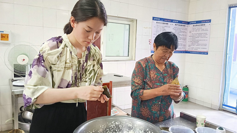 隨后, 有“包粽能手”對每個步驟進(jìn)行現(xiàn)場講解——捋粽葉、做漏斗、填糯米、壓緊實(shí)、封口、扎捆,根據(jù)講解分工協(xié)作,一片片粽葉在他們的手中上下翻飛、彎曲折疊,不一會兒功夫,一只漂亮粽子瞬間成型。“我們包的不僅僅是粽子,還把快樂、幸福、安康一同包進(jìn)這香香糯糯的粽子里。”參與包粽子的干部職工紛紛表現(xiàn)出了對傳統(tǒng)文化的理解認(rèn)識和對當(dāng)下幸福生活的喜悅。