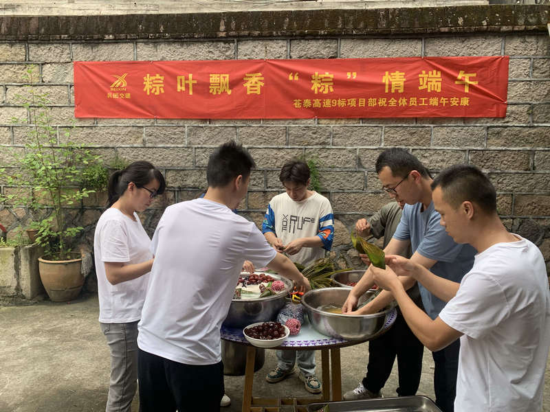為進(jìn)一步豐富項(xiàng)目部業(yè)余生活,促進(jìn)員工間相互交流,提高工作熱情,打造幸福和諧的項(xiàng)目氛圍,同時(shí)也為了答謝項(xiàng)目部全體員工的辛勤工作,6月18日,兵團(tuán)交建蒼泰9標(biāo)項(xiàng)目部開(kāi)展了“粽葉飄香粽情端午”活動(dòng),以包粽子的形式,迎接端午節(jié)的到來(lái)。