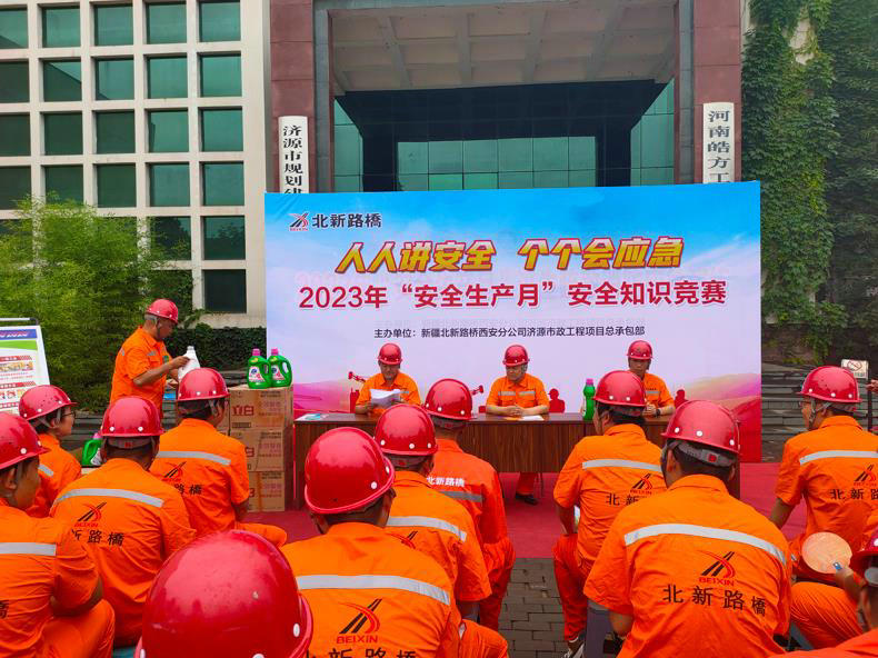 為進(jìn)一步營造懂安全、講安全、守安全的濃厚氛圍,推動“安全生產(chǎn)月”活動深入開展,實(shí)現(xiàn)“以月促年,以年促安”目標(biāo)。6月17日,北新路橋集團(tuán)西安分公司濟(jì)源市政工程項(xiàng)目組織全員開展安全知識競賽活動。