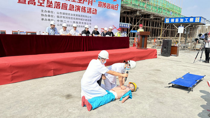 為進(jìn)一步加強(qiáng)員工的安全意識,克服麻痹僥幸心理,提高意外事故的搶險救援和自我防范能力,切實掌握發(fā)生高空墜落事故后的應(yīng)急處置方法。6月20日,中鐵二十一局四公司臨沂東部商城項目部開展2023年“安全生產(chǎn)月”宣傳咨詢?nèi)蒸吒呖諌嬄鋺?yīng)急演練活動。臨沂東城建設(shè)投資集團(tuán)有限公司、山東天健信達(dá)工程咨詢有限公司、劉店子醫(yī)院等相關(guān)領(lǐng)導(dǎo)出席本次活動。