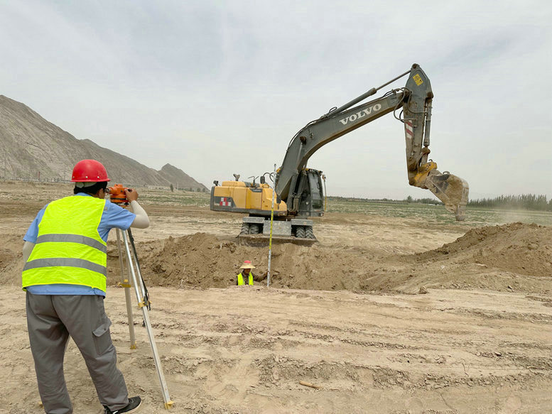 酷熱三伏天,圖木舒克經(jīng)濟(jì)技術(shù)開發(fā)區(qū)唐王城新型材料產(chǎn)業(yè)園一期安陽路、康平路片區(qū)基礎(chǔ)設(shè)施建設(shè)項(xiàng)目(三標(biāo)段)施工現(xiàn)場(chǎng)一篇大干景象,下午4點(diǎn)多,地面溫度高達(dá)40多度,技術(shù)員馬海東說“天氣再熱,儀器架好以后,站在這里就不能動(dòng)了,因?yàn)槿艘粍?dòng)就會(huì)碰到三腳架的腳架,碰到以后,前視后視的檢測(cè)點(diǎn)精度就會(huì)不準(zhǔn),然后產(chǎn)生的數(shù)據(jù)就不會(huì)吻合”,站在烈日下十分鐘,額頭上的汗珠止不住的往下流。圖為堅(jiān)守在一線崗位上的測(cè)量工作人員馬海東,正在測(cè)量K0+500段供熱管道的開挖高程。