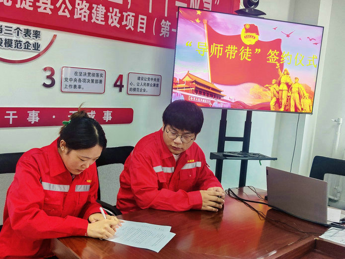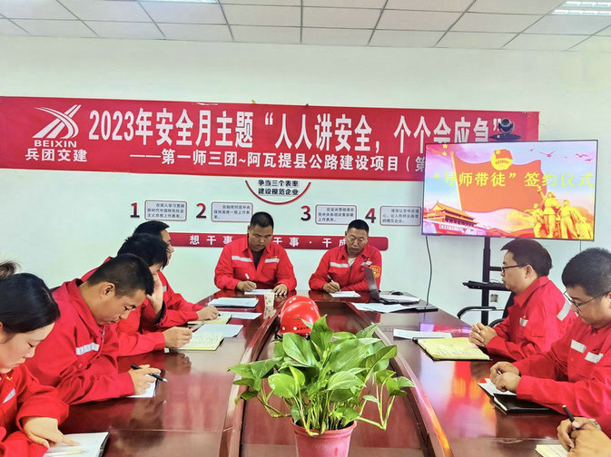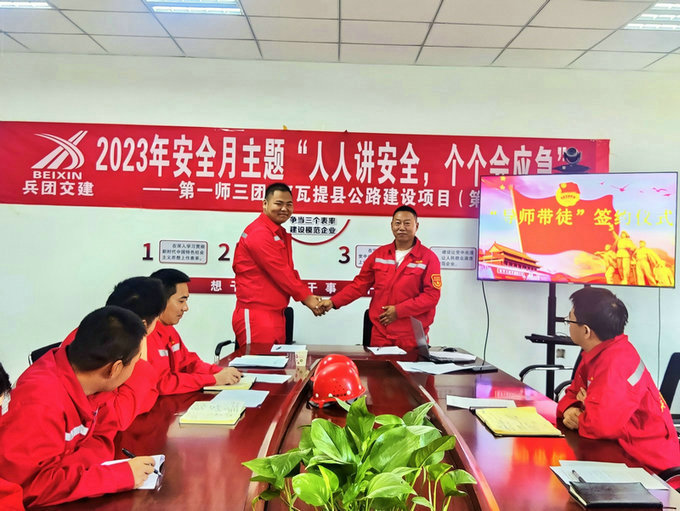 為幫助新進員工適應(yīng)崗位,融入工作,盡早成長為企業(yè)發(fā)展的骨干人才,7月14日,兵團交建第一師三團-阿瓦提縣公路項目第一合同段開展了“傳承匠心 攜手共進”導師帶徒簽訂儀式,3名青年職工與各自的導師簽訂了《導師帶徒協(xié)議書》,結(jié)成“傳、幫、帶”對子。