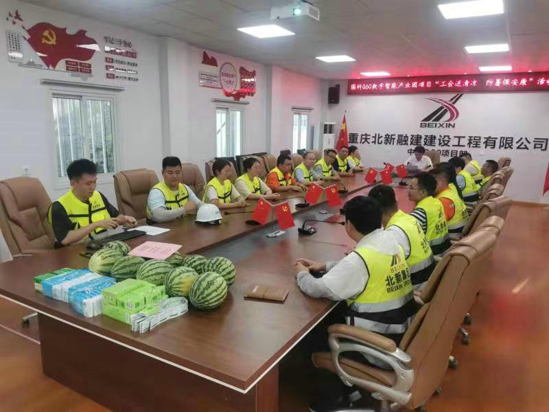 為上海國(guó)科G60數(shù)字智能產(chǎn)業(yè)園項(xiàng)目員工送上解暑水果飲品及藥品,召開(kāi)座談會(huì),了解職工思想狀況,叮囑職工們提高安全健康意識(shí),合理調(diào)整工作時(shí)間,注意休息,防止中暑。(武楷文攝)