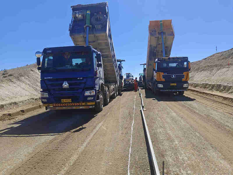 福海訊(通訊員 馬冬玲)近日,在兵團(tuán)交建公司國(guó)道576項(xiàng)目施工現(xiàn)場(chǎng),隨著攤鋪機(jī)作業(yè)的轟鳴聲,一排排拉滿水穩(wěn)料的大貨車不停的往攤鋪機(jī)上倒卸物料,幾十名工人手握鐵鍬辛苦的勞作著,打響了水穩(wěn)基層攤鋪的第一槍,標(biāo)志著項(xiàng)目部全面進(jìn)入路面基層施工階段。