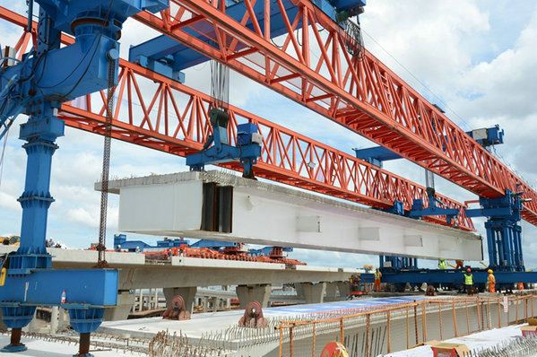 最后一片梁安放在兩端橋墩上 呂奎元攝