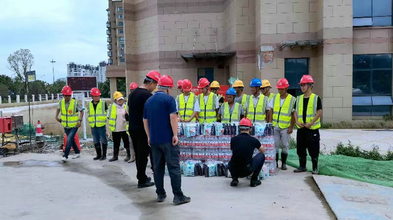 陳興江、錢曉輝一行現(xiàn)場(chǎng)為一線施工人員發(fā)放慰問品