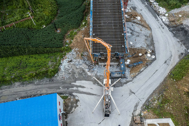 湯河2號大橋分別連接黑松谷和黑影崗隧道,是標段控制性工程之一。臨邊防護與安全保障是施工中的重中之重。面對工程跨越既有鐵路、公路及河流,施工環(huán)境差、安全風險疊加、工期要求緊,雨水頻繁等挑戰(zhàn),中鐵二十三局集團沈白高鐵項目部三分部,舉全員之力,不斷加大人、財、物投入力度,分別在跨越鐵路和公路上方搭設(shè)鋼構(gòu)防護棚洞各一座,為掛籃施工和混凝土澆筑開辟了綠色通道。他們結(jié)合工程進展及天氣變化情況,不斷優(yōu)化施工方案,動態(tài)調(diào)整施工順序,明確任務圖、時間表,倒排工期,工期節(jié)點細化到天。牢牢把控跨線高空作業(yè)、混凝土澆筑、橋梁張拉等關(guān)鍵環(huán)節(jié),關(guān)鍵工序責任到人、專人盯守,安全優(yōu)質(zhì)高效地完成了鉆孔樁70根、承臺7個、墩柱5個、臺身2個及4孔32米雙線簡支梁+(32+48+32)米雙線連續(xù)梁。