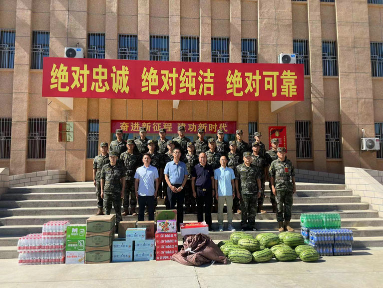 北屯訊(通訊員 臧明超) 為慶祝中國人民解放軍建軍96周年,弘揚(yáng)擁軍優(yōu)屬的優(yōu)良傳統(tǒng),7月31日,兵團(tuán)交建北屯分公司黨支部開展“慶八一”慰問武警執(zhí)勤四支隊(duì)活動,黨支部書記蔡東帶隊(duì)走訪慰問駐北屯市兵團(tuán)武警執(zhí)勤四支隊(duì),共敘軍民魚水深情,向部隊(duì)官兵致以節(jié)日的問候并送上慰問品。