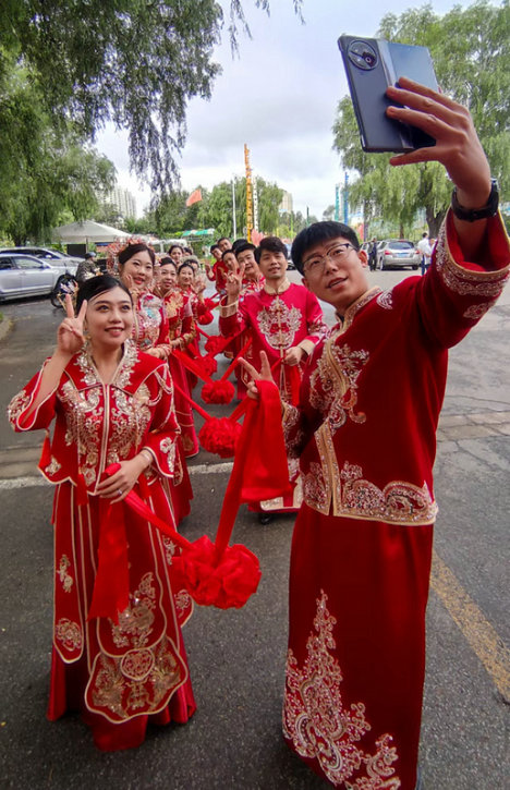 “今天是個(gè)好日子,心想的事兒都能成……”歌聲是對新人的美好祝福,也是大家的共同期待。緣定新時(shí)代、奮進(jìn)新征程,攜手一起向未來。 (楊景霜 宋燕軍)