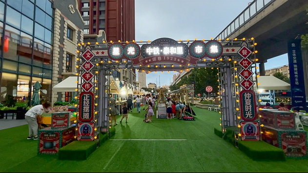 作為中鐵·泰和里的首開區(qū),印巷1923星光市集復(fù)刻了百年前的鄭州市井文化,吸引了美食、文創(chuàng)玩物等攤位入駐,配置了火車頭、黃包車、電視機(jī)等具有歷史標(biāo)志的老物件,打造了復(fù)古民國風(fēng)情與現(xiàn)代潮流結(jié)合的“夜經(jīng)濟(jì)”,吸引了眾多市民前來參與互動,體驗新“夜”態(tài)。