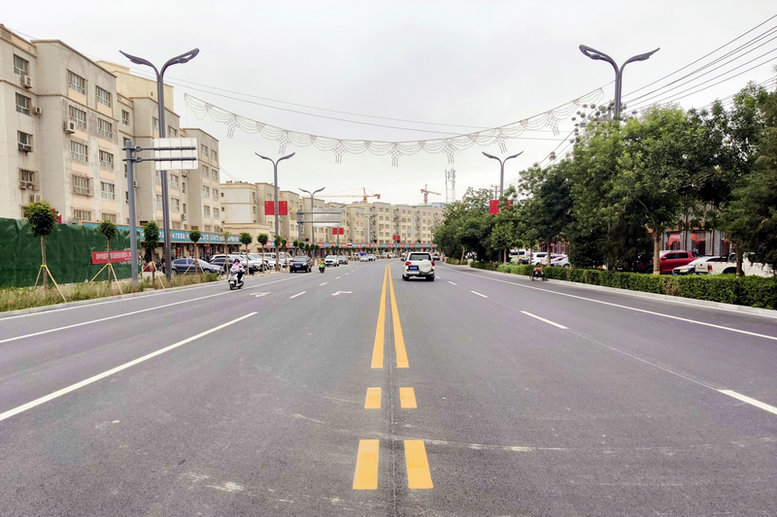 該工程位于輪臺縣中心區(qū)西部,道路等級為城市次干路,呈南北走向,北起交通路,南至哈爾巴格路,全長1979.233米。道路總幅寬34米,機(jī)動(dòng)車道由原來的10.5米擴(kuò)建至現(xiàn)在的20米。道路包括機(jī)動(dòng)車道、非機(jī)動(dòng)車道、人行道、綠化、給排水及配套基礎(chǔ)設(shè)施。自2022年3月1日開工以來,中鐵二十一局參建人員積極克服拆遷難、疫情防控、材料堆放地點(diǎn)距離現(xiàn)場施工點(diǎn)遠(yuǎn)、道路狹窄、地形及現(xiàn)場環(huán)境復(fù)雜等種種困難,竭盡全力推進(jìn)施工建設(shè),于2023年5月25日保障全線開通使用。