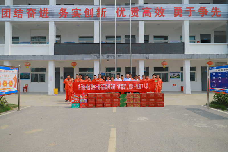 8月的宿州,夏日炎炎,熱浪滾滾,宿固項目施工現(xiàn)場仍是機械轟鳴,人頭攢動,一派繁忙景象,職工們鉚足干勁,經(jīng)受著“烤驗”,為宿固高速項目建設(shè)揮灑著汗水。“你們辛苦了,天氣炎熱,可要謹(jǐn)防中暑”,鄧峰為一線建設(shè)者送去了礦泉水、飲料、藿香正氣水等防暑降溫物資,叮囑他們要注意勞逸結(jié)合,在堅守工作崗位的同時,確保身體安全健康。