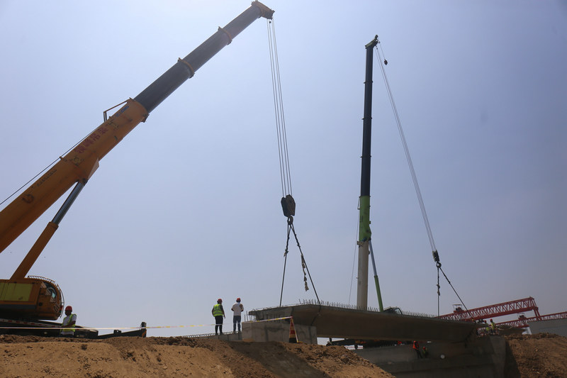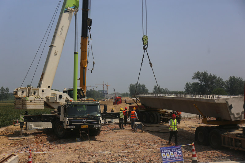 據(jù)悉,宿固高速TJ02合同段項(xiàng)目?jī)?nèi)設(shè)新汴河特大橋1座、如意溝大橋1座、中小橋及跨線橋合計(jì)8座,共計(jì)需架設(shè)箱梁483片,其中20米箱梁39片,30米箱梁236片,33.2米箱梁16片,35米箱梁32片,40米箱梁16片,13米T梁144片。此次首片箱梁的成功架設(shè),拉開(kāi)了項(xiàng)目部橋梁上部結(jié)構(gòu)施工序幕,為后續(xù)施工按下“加速鍵”。