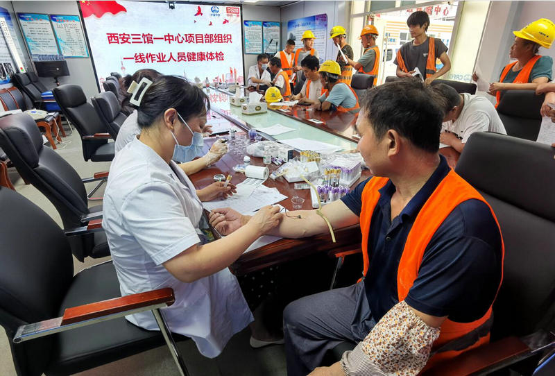 為切實維護作業(yè)人員的身心健康,提高大家的健康意識,8月16日,中鐵一局西安三館一中心項目組織開展了“健康體檢進工地 情暖一線工友心”活動,為80余名一線作業(yè)人員進行免費的健康體檢。
