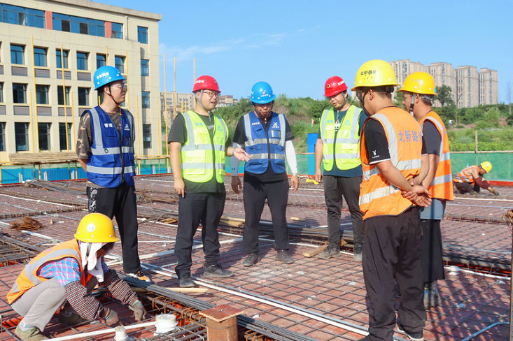 在項(xiàng)目建設(shè)過(guò)程中,工期短、任務(wù)重,高溫及強(qiáng)降雨天氣交織影響計(jì)劃節(jié)點(diǎn)順利推進(jìn)是“卡脖子”難題。投資公司公司黨委十分重視,公司黨委委員、副總經(jīng)理、總工程師楊云峰多次赴項(xiàng)目部開(kāi)展現(xiàn)場(chǎng)指導(dǎo)工作,配合甲方、監(jiān)理及過(guò)控單位制定解決方案。針對(duì)方案優(yōu)化重難點(diǎn)問(wèn)題,項(xiàng)目部不等不靠,積極主動(dòng)組織專(zhuān)業(yè)人員多次進(jìn)行專(zhuān)題研究,依據(jù)設(shè)計(jì)圖紙及施工進(jìn)度對(duì)方案進(jìn)行商討明確;同時(shí)結(jié)合主體結(jié)構(gòu)工程進(jìn)度,全面判定和辨識(shí)危大工程和重大危險(xiǎn)源,對(duì)六項(xiàng)危大工程進(jìn)行安全專(zhuān)項(xiàng)施工方案編制及專(zhuān)家論證,成立了農(nóng)民工夜校,在施工過(guò)程中的不同階段和時(shí)段,項(xiàng)目部分工種、分工序?yàn)樽鳂I(yè)人員開(kāi)展專(zhuān)題培訓(xùn),全面筑牢企業(yè)發(fā)展的安全防線。。恰逢重慶高溫及汛期天氣交織,項(xiàng)目部為保障工期進(jìn)度,在確保安全的前提下,辦理夜間許可證適時(shí)開(kāi)展夜間施工,在工序質(zhì)量保障的前提下,全力推進(jìn)施工進(jìn)度。全體施工人員以熱度不減、建設(shè)正酣的干事激情持續(xù)攻堅(jiān)克難、搶抓節(jié)點(diǎn)任務(wù)。