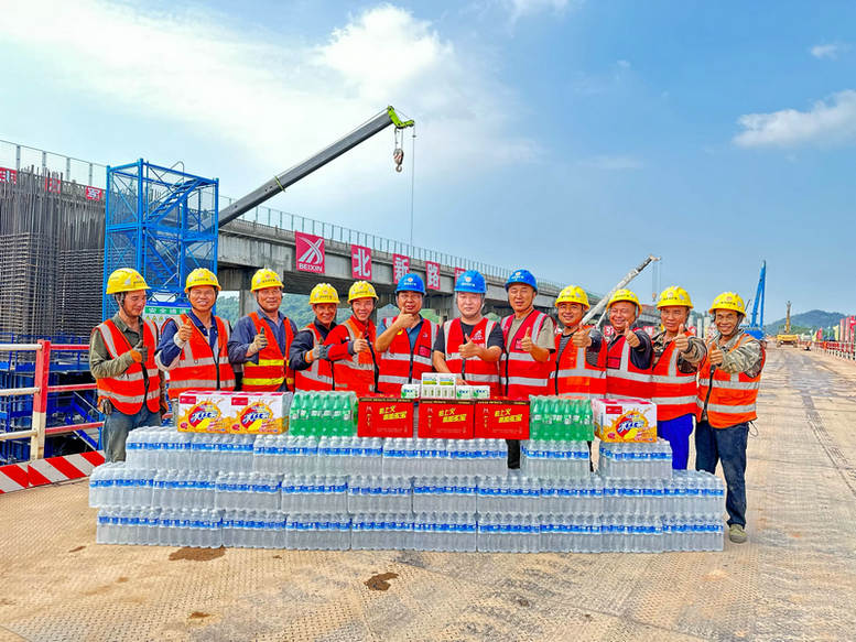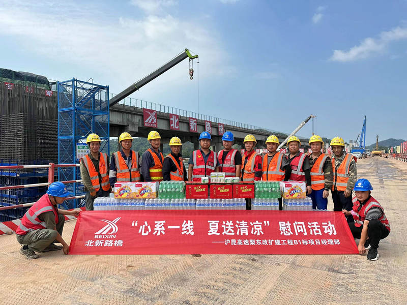 圖說(shuō):北新路橋集團(tuán)長(zhǎng)沙分公司滬昆B1標(biāo)項(xiàng)目當(dāng)前已進(jìn)入施工大干期,項(xiàng)目經(jīng)營(yíng)層到各工點(diǎn)開(kāi)展送清涼活動(dòng) 盧仕磊 攝