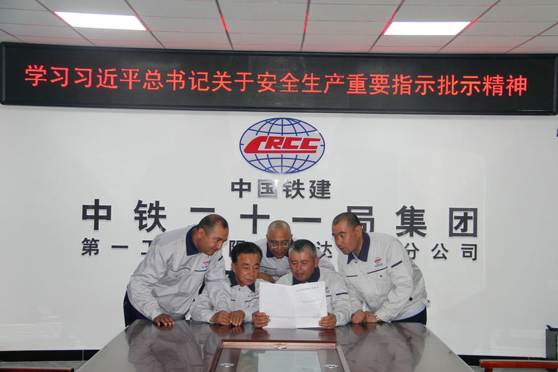 9月12日,中鐵二十一局一公司達坂城分公司三葛莊道碴專用線裝車班組的少數(shù)民族職工認真學習領(lǐng)會習近平總書記關(guān)于安全生產(chǎn)的重要指示批示精神,進一步增強安全意識。