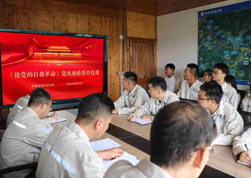 為扎實開展好黨性黨風黨紀教育,進一步引導廣大黨員干部堅定理想信念,筑牢廉潔底線,錘煉忠誠干凈擔當?shù)恼伪旧毙侣窐虮鴪F交建公司蒼泰9標項目全體黨員共同學習《論黨的自我革命》之“必須把反腐倡廉當作政治必修課”內(nèi)容。