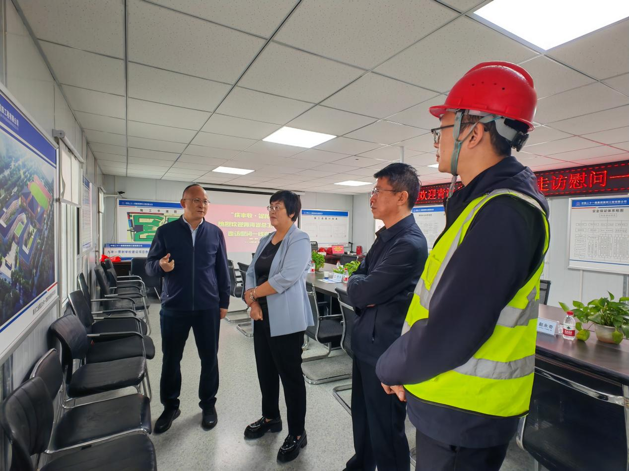 (汪琦聽取中鐵二十一局四公司黨委副書記、工會主席段榮福匯報 王海山攝) 汪琦一行深入施工現(xiàn)場,詳細了解了項目施工進度、重難點工程推進、現(xiàn)場安全管理、現(xiàn)場質(zhì)量管控及標準化建設等方面的情況,對項目現(xiàn)場施工安全、進度、管理成效給予了高度認可。
