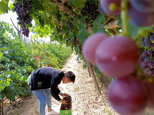 采摘園內(nèi),萬(wàn)紫千紅的葡萄映入眼簾,陽(yáng)光的照耀下,顆顆顯得搖搖欲墜。到達(dá)目的地后,“工作組”成員頂著大太陽(yáng)便開(kāi)始在葡萄架中穿梭,剪下的每一串葡萄都是用心挑選。隨著汗珠的滴落,一串串的葡萄也被裝入了箱內(nèi)。看著壘起來(lái)的滿(mǎn)滿(mǎn)數(shù)十箱葡萄,再想到員工們也很快就能?chē)L到這么甜美的果實(shí),工作組人員的心里便樂(lè)開(kāi)了花,一切的疲憊也隨之煙消云散。