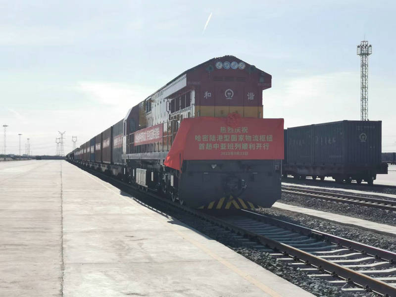 9月23日11時30分,哈密路港中心城北物流港鞭炮齊鳴,哈密陸港型國家物流樞紐首趟中亞班列在和諧號火車頭洪亮有力的汽笛聲中,伴隨著五彩煙花緩緩駛向哈密火車站,標志著由中鐵二十一局一公司負責施工的城北公鐵聯(lián)運物流園鐵路專用線全線開通,至此哈密城北物流港正式投入運營。
