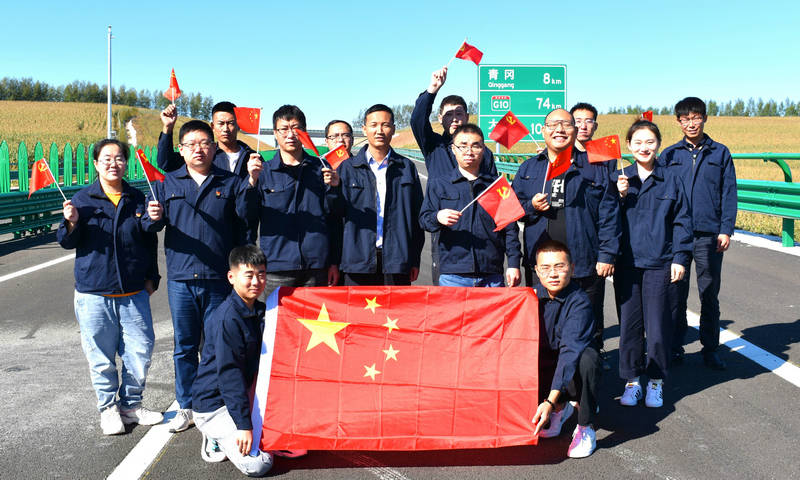 承擔(dān)綏大高速公路施工的中鐵二十三局集團(tuán)參建職工勇于擔(dān)當(dāng)、守土盡責(zé),為龍江交通事業(yè)高品質(zhì)發(fā)展貢獻(xiàn)央企力量。以安全、優(yōu)質(zhì)、高效的優(yōu)異成績(jī),為祖國(guó)74華誕獻(xiàn)禮,祝福偉大祖國(guó)日新月異、繁榮昌盛、國(guó)泰民安,生日快樂! (楊景霜 朱晨)