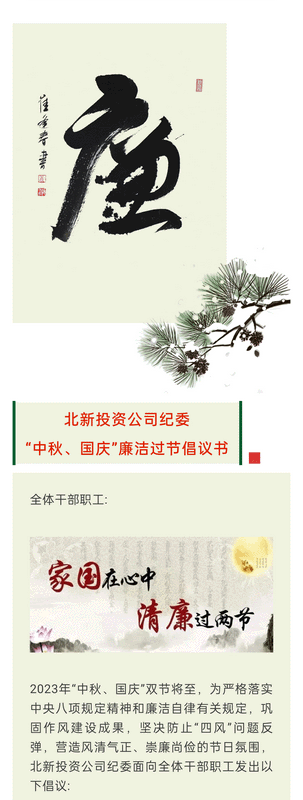 北新投資公司紀委│“中秋、國慶”廉潔過節(jié)倡議書