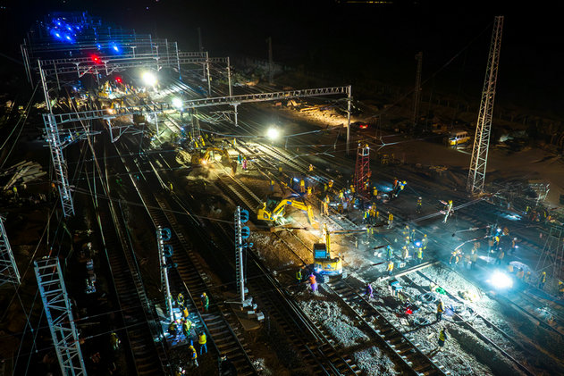當前,中鐵二十一局承建的精阿二線S2標段的路基土方、擋土墻、橋涵工程已全部完工,蘑菇灘站改、博樂東站改、精河站站改均已完成并開通。目前剩余的路基附屬、橋涵附屬、三個車站站內(nèi)無縫化改造、房建工程和14公里鋪軌工程正在緊鑼密鑼地推進施工中,預計11月份將完成精河至阿拉山口雙線開通目標,為推進“一帶一路”建設、提高蘭新鐵路貨運通過能力和進出口運輸效率貢獻力量。