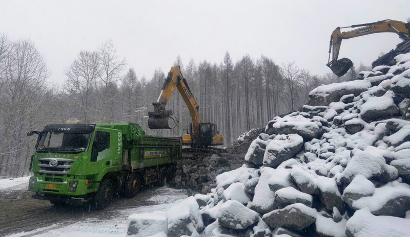 為了應(yīng)對(duì)長(zhǎng)白山腹地暴雪、冰凍、寒流等極端天氣頻發(fā)狀況,項(xiàng)目部提前對(duì)路窄、坡陡、彎急道路的錯(cuò)車平臺(tái)進(jìn)行了修繕加固。3支清雪突擊隊(duì)嚴(yán)陣以待,做到了隨下隨清,保證車輛運(yùn)輸?shù)陌踩珪惩?。目前?xiàng)目已儲(chǔ)備冬施需要的中砂8.7萬(wàn)立方米、巖棉保溫被13600平方米、防滑爐灰3000立方米、融雪劑176噸等物資,冬施期間物料儲(chǔ)量充足。