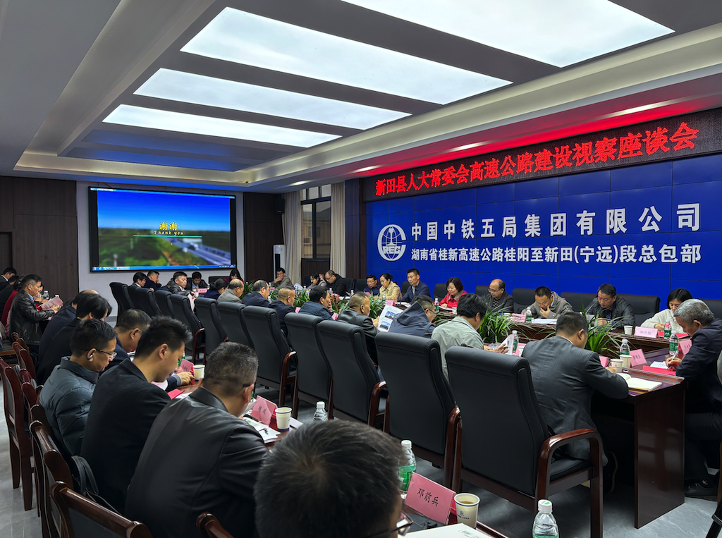 11月30日,新田縣人大常委會(huì)主任李祥佐率縣人大常委會(huì)成員、交通局、財(cái)政局、自然資源局、應(yīng)急管理局共計(jì)60余人到中鐵五局桂新高速公路項(xiàng)目部進(jìn)行調(diào)研視察,縣政府副縣長彭曉軍、政協(xié)副主席鄭小龍及沿路鄉(xiāng)鎮(zhèn)負(fù)責(zé)人、項(xiàng)目領(lǐng)導(dǎo)班子成員陪同調(diào)研。