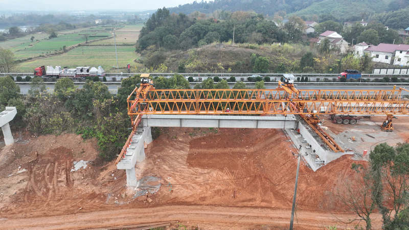 圖說:北新路橋集團長沙分公司 滬昆B1標(biāo)項目胡家榨大橋26#臺架梁施工 孫鵬攝