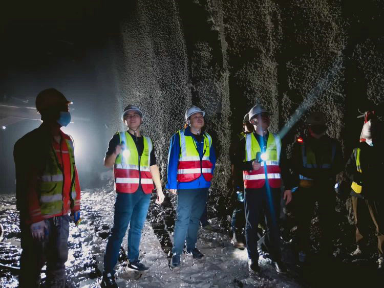 項(xiàng)目書(shū)記韓崇生(左三)經(jīng)理阮超(左四)深入隧道作業(yè)面與現(xiàn)場(chǎng)責(zé)任人定時(shí)檢查