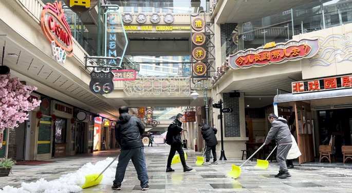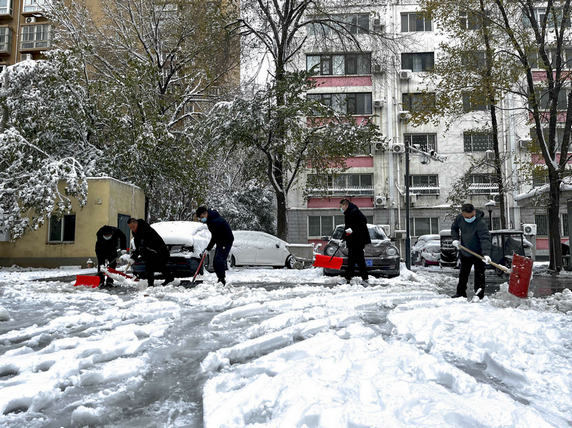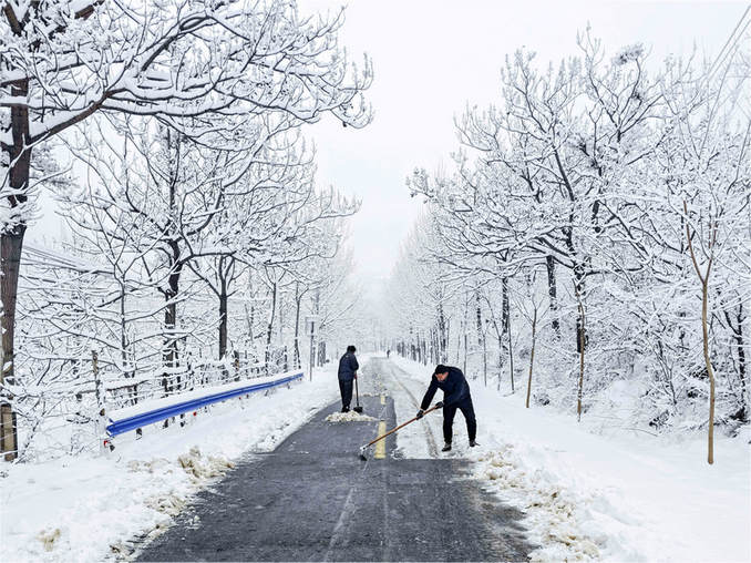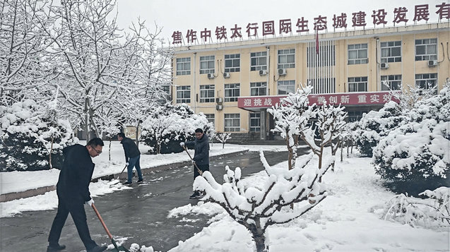 產品四部組織員工在中鐵太行國際生態(tài)城全力清掃道路積雪,彰顯企業(yè)責任擔當。
