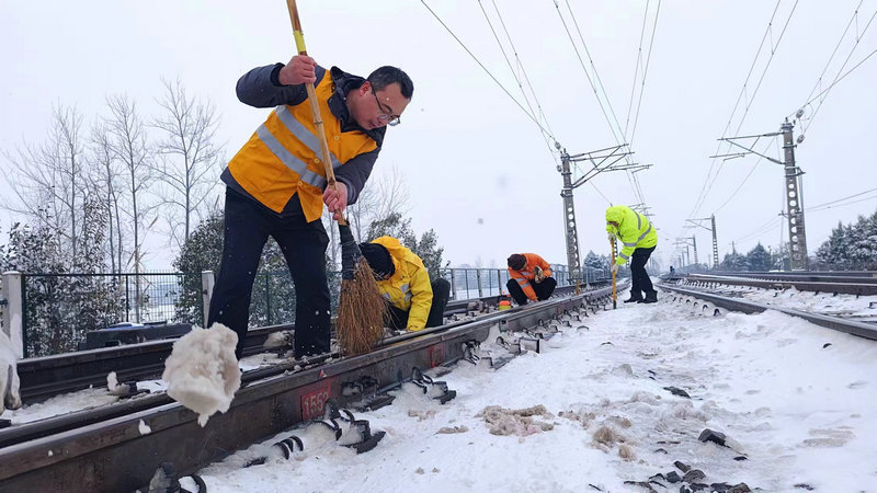 連日來,安徽西北區(qū)地區(qū)普降大雪。為確保春運期間列車運輸安全暢通,阜陽工務(wù)段以雪為令,聞雪而動,黨員干部壓實責(zé)任,靠前指揮,帶領(lǐng)職工開展掃雪除冰工作,全力保障鐵路線路暢通和旅客安全出行。