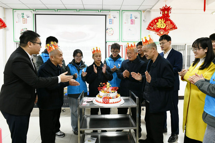 捐贈現(xiàn)場,公司團(tuán)委書記李培潤與富平縣民政局黨組成員、敬老院院長余增亮給每位老人依次發(fā)放了鞋帽、牛奶、面包、大米、油等慰問品,幫老人們打掃了衛(wèi)生,整理了被褥,并與老人們圍坐一起進(jìn)行親切交談,了解他們在院的生活情況,并送上了集體生日。他們的到來使原本安靜的小院,充滿了歡聲和笑語。