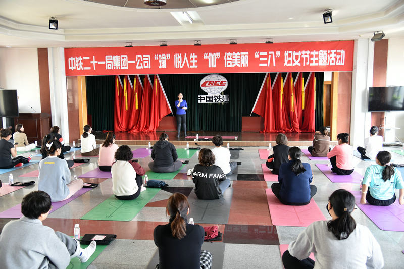 為慶祝“三八”國(guó)際勞動(dòng)?jì)D女節(jié),進(jìn)一步舒緩女職工工作生活壓力,3月7日下午,中鐵二十一局一公司工會(huì)組織62名女職工開展了“‘瑜悅?cè)松?lsquo;伽’倍美麗”主題健身活動(dòng)。